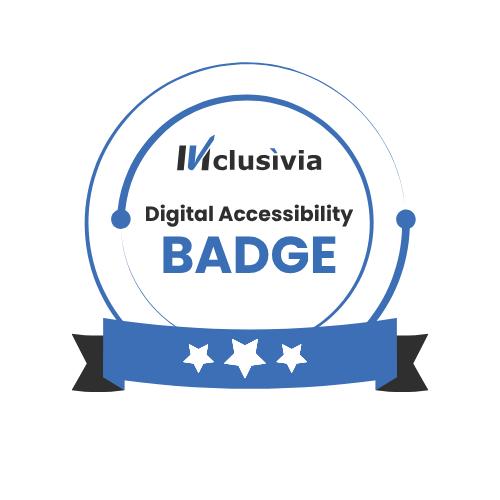 Il badge “Accessibile con Inclusivia” è il riconoscimento ufficiale che attesta il miglioramento dell’accessibilità del tuo sito web, secondo gli standard internazionali WCAG e in linea con l’European Accessibility Act.